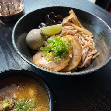 Thick, chewy noodles served separately with a rich, concentrated dipping broth. Dip each bite for the perfect balance of umami depth and fresh noodles. Topped with selected seafood, soft-boiled egg, and seasonal garnishes for a bold, interactive ramen experience. Dipping sauce includes pork chashu, menma, and green onion.